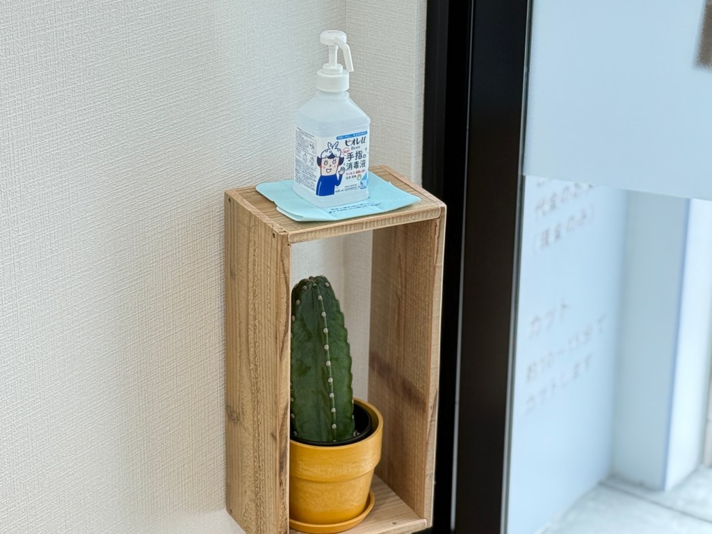 店内入ってすぐ右側に消毒液を設置いたしました。