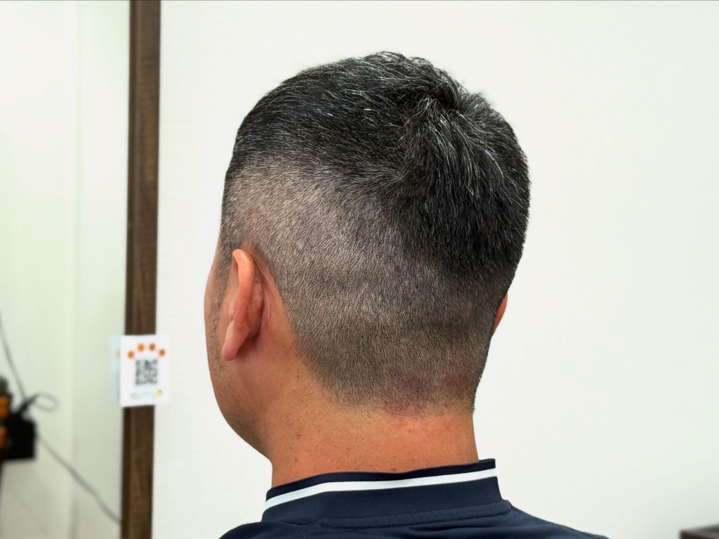 最近は非常に短いミリ数(0~3mmくらい)から刈り上げて、トップにかけてグラデーションをつけていく「フェード」も流行っていますよね💡